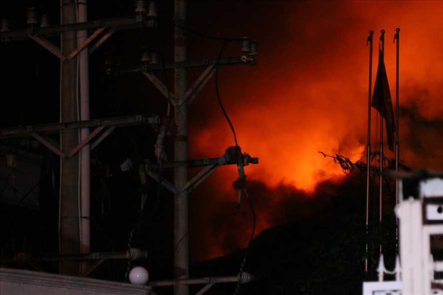 Đám cháy đến 20h30 vẫn đang rất lớn. Ảnh: Bảo Trung