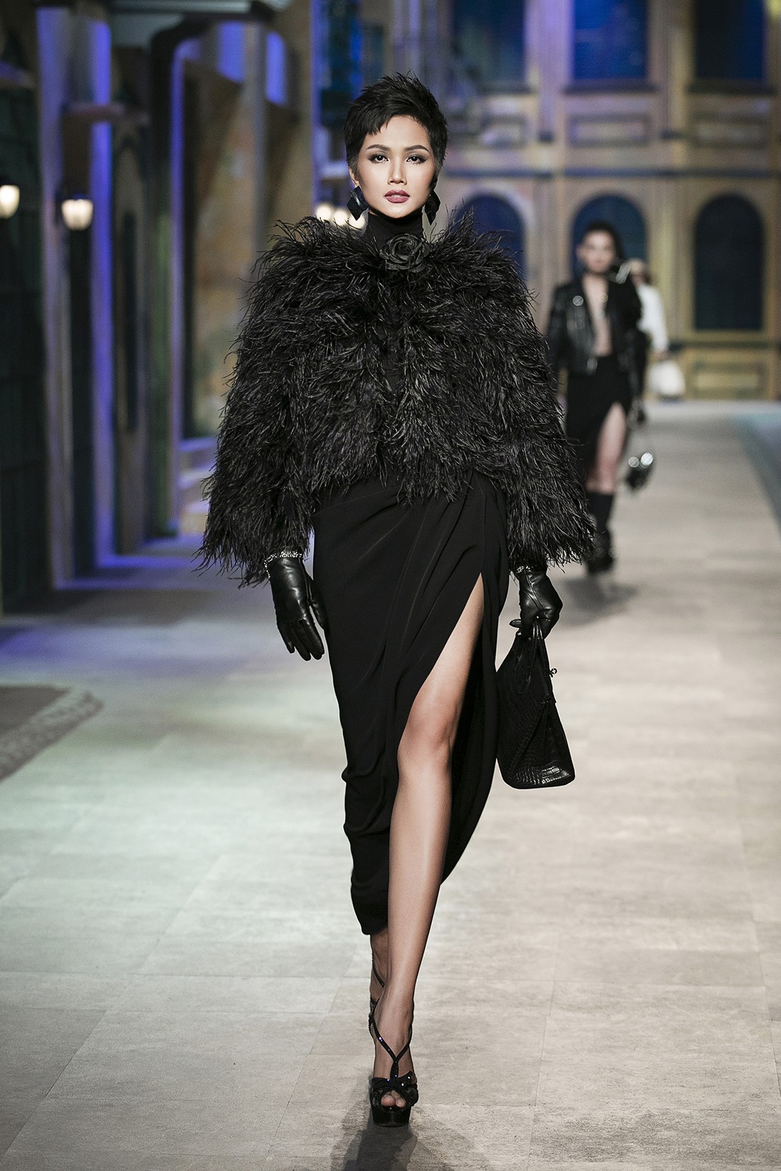 Ngay từ bộ cánh đầu tiên do Hoa hậu H'Hen Niê trình diễn đã cho thấy sự xa hoa hào nhoáng của BST "Mix&Match"