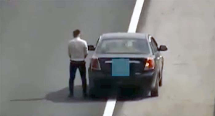 Tài xế dừng xe, tiểu tiện trên cao tốc là hành vi rất nguy hiểm và phản cảm.